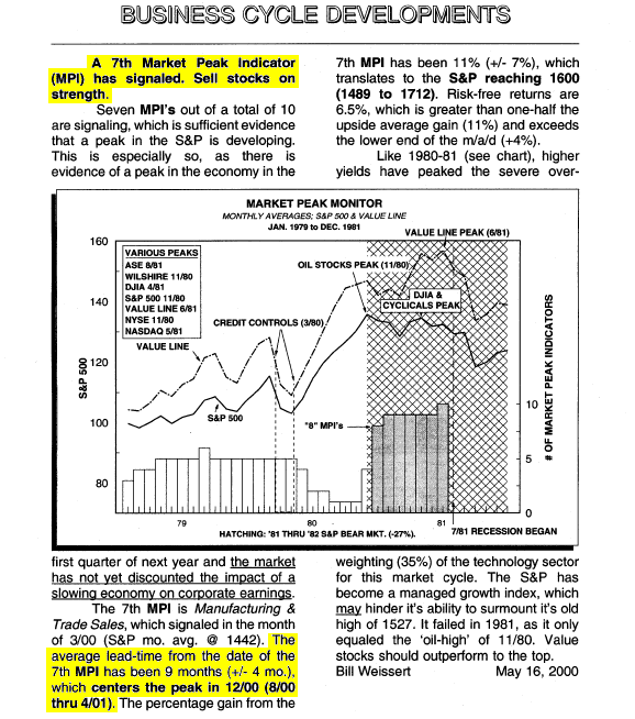 May 16, 2000 – “Sell” This targeted the monthly average S&P 500 peak between August ’00 thru April ’01 at a level between 1489 and 1712. It peaked in August 2000 at a monthly average of 1485! The S&P decline was -36%!