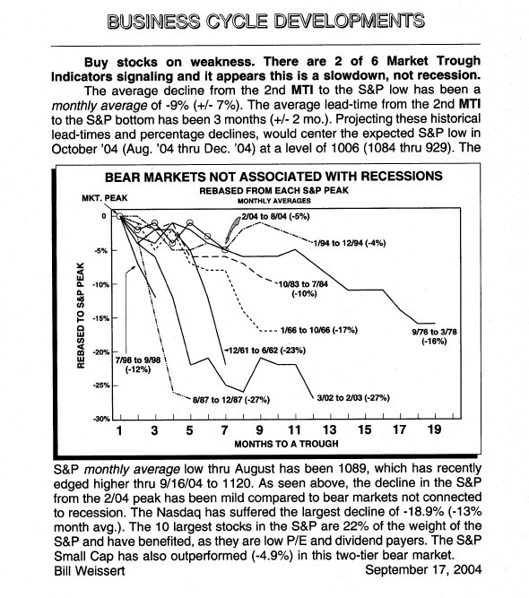 September 17, 2004 – “Buy” This “buy” missed the daily close low by 12 days, or 2%. The subsequent S&P peak was +39% higher 36 months later.