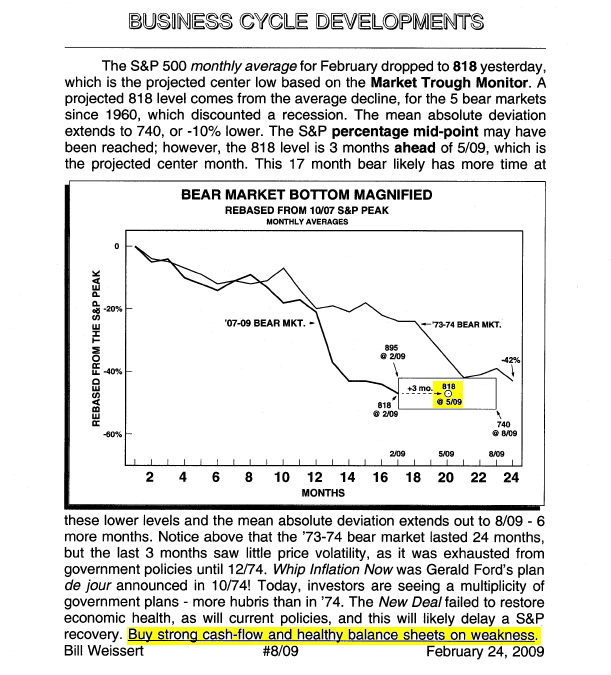 February 24, 2009 – “Buy” This “buy on weakness” was nine days before 3/9/09 S&P low! The subsequent gain to the next peak was +80%!
