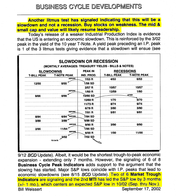 September 17, 2002 – “Buy” Sixteen days later the S&P bottomed on 10/2/02 and then climbed +49% to February 2004 peak!
